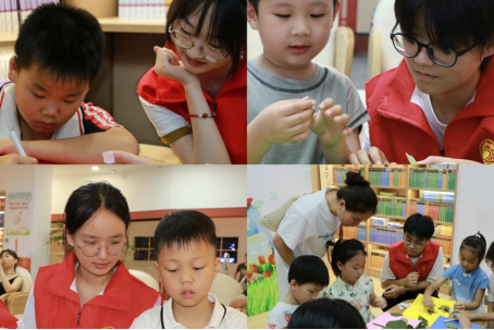 本网消息 7月5日,为丰富文化活动形式,践行大学生实践育人理念,永利集团88304官网环境科学与工程学院绿色天使志愿服务大队组织志愿者,在辅导员李情老师的带领下走进黄石港新华书店开展“落叶拼贴画” 创意实践活动。此次活动不仅为托管班的孩子们带来了一次艺术启蒙,更将环保理念深植于孩子们的心中。