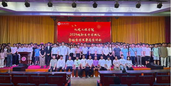 本网消息 9月29日下午,机电工程学院2025级新生开学典礼暨优秀学生代表事迹宣讲会于豁度楼208顺利召开。学院全体领导班子、2025级新生班主任、全体辅导员及2025级新生共计300余人参与本次活动,活动由陈昊蓝主持。