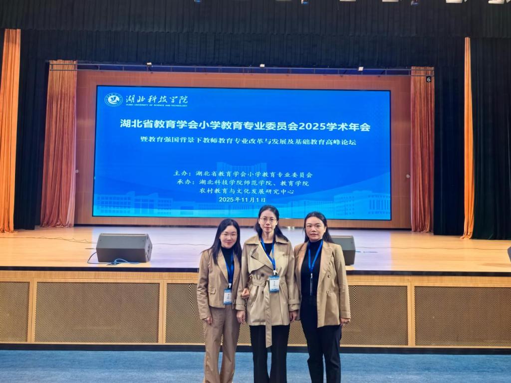 本网消息 11月1日,湖北省教学学会小学教育专业委员会2025年学术年会在湖北咸宁成功举行。永利官网师范学院副院长刘燕、小学教育专业教师王乐和罗司典参加了此次会议。