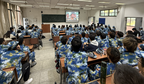 观影过程中,现场秩序井然,新生们全神贯注,时而为英雄事迹热泪盈眶,时而为国防成就倍感自豪。