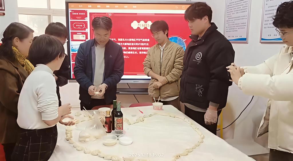 活动现场,师生们围坐在一起,分工协作,笑语不断。许多同学虽是第一次包饺子,但在老师和其他同学的耐心指导下,也逐渐掌握了技巧。从捏褶塑形到摆放成型,大家边包边聊,分享着冬至的习俗与趣事,一张张饺子皮在师生手中变成形态各异的饺子,小小的活动室里满是欢声笑语,处处洋溢着温馨的节日氛围。