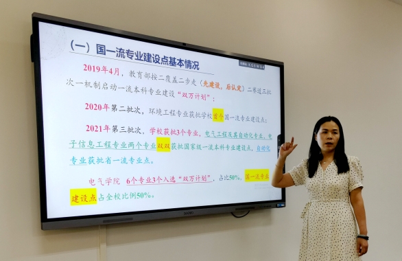马学军教授以“围绕办学质量和办学层次双提升,抓好电气学院标志性科研成果”为题交流发言。他强调,要大力推进教学与科研重点工作,为申硕打好坚实基础,从教科研平台建设、重点实验室建设、高质量纵横向项目、省部级以上科研奖励、发明专利与专著等方面抓好学院标志性科研成果的积累,并做好领军人才引进、科研团队建设、校校合作与校企合作等工作,规划好学科建设近中远期目标,脚踏实地走好每一步。