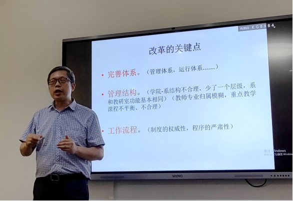 潘超副院长以“教育教学改革和专业建设”为题,围绕专业建设重点内容、教育教学改革关键点,提出了建设思路及改革措施。