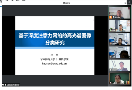 其中来自华中师范大学的孙昊博士做了题为《基于深度注意力网络的高光谱图像分类研究》的学术报告,该报告介绍了基于像素级的高光谱图像分类任务,以及围绕判别性特征提取、快速分类等方面进行汇报,同时介绍了高光谱图像分类中存在的若干问题和解决方法。