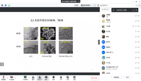 汪召豪博士中期汇报课题《MOFs衍生材料@石墨烯复合电极材料的制备及其性能研究》,通过MOFs衍生材料@石墨烯复合材料的合成制备,构建基于高电化学性能、高催化活性的电极材料的电化学传感器,实现对有机环境污染物高灵敏、高选择性的检测,建立有机环境污染物的检测新方法。目前项目进展顺利,主持校企合作横向项目2项,申请湖北省科技进步奖二等奖1项。