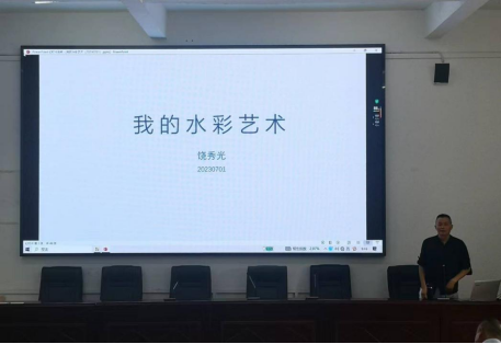 大冶四中是九三学社黄石书画院“送文艺进校园”惠民活动的主要对象,此次受大冶四中邀请为学校全体教职工进行书画培训。永利集团88304官网艺术学院副教授、九三学社黄石书画院院长饶秀光分享了“我的水彩艺术”;艺术学院教师肖长生分享书法入门的基本知识,对五体书法的特点以及如何选帖临摹,进行了较深刻的分析与讲评。通过这次培训提高了教职工的美术欣赏水平,了解和掌握了书法的基本知识