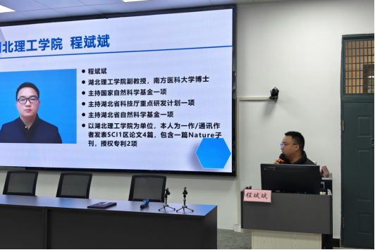 程斌斌博士报告主题为《以未满足的临床需求为导向开发原创1类新药》,介绍了研究小分子的肿瘤双免疫疗法,靶向PD-L1/CXCL12双功能分子,原创性提出小分子免疫疗法的概念,提出免疫治疗有效应答率,克服抗体药物不足等,研究成果发表于Nature子刊,获得发明专利1项。罗亮教授对其研究成果高度评价,期望程斌斌博士继续钻研,获得更大的成就。