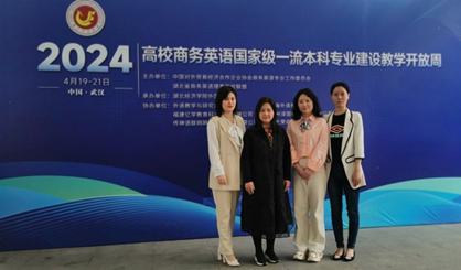 本网消息 4月19日-21日,高校商务英语国家级一流本科专业建设教学开放周活动在湖北经济学院外国语学院召开,永利官网外国语学院院长张健、副院长张嵋琳、英语系主任李雅颖和商务英语专业骨干教师张俊一行四人参加了此次活动。