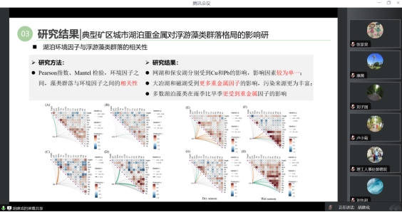 随后,胡天鹏博士和朱文君博士分别作博士后中期考核汇报。胡天鹏博士中期汇报课题为《鄂东地区黑碳及多环芳烃湖泊沉积记录及其对人类活动响应》,目前项目进展顺利,已经完成课题工作量的样品采集及预处理工作。在站期间获批湖北省重点研发计划(社会发展领域)1项,部级重点实验室开放课题1项,湖北省重点实验室开放课题1项,校企合作横向课题1项。后续将尽快完成样品分析测试,进入数据分析及成果撰写阶段。朱文君博士中期汇报课题为《MOFs衍生碳基材料及其降解有机污染物的研究》,目前项目进展顺利,已完成一个研究体系(Zn(NO3)2修饰Cu-MOF衍生富OV-ZnCuOx@C的制备及其应用),在站期间获批湖北省重点实验室开放课题1项。后续将完善其他体系的表征与分析,完成成果撰写。