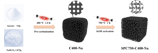 陈恩慧同学在期刊Colloids and Surfaces A: Physicochemical and Engineering Aspects发表了以“Sodium bicarbonate-assisted construction of honeycomb-like porous carbon materials with interconnected cavities for enhanced zinc ion storage”为题的论文,以蔗糖为原料,围绕碳酸氢钠辅助预炭化处理,同时结合高温活化,通过两步炭化法成功构筑氧掺杂3D蜂窝状多孔碳材料,该研究成果对锌离子混合电容器正极材料的设计具有重要的参考价值。